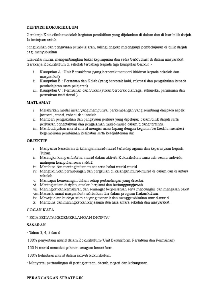 Objektif Dan Matlamat Kokurikulum Pdf