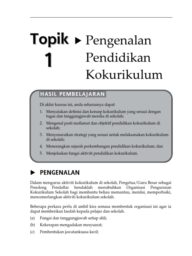 Topik 1 Pengenalan Pendidikan Kokurikulum Pdf