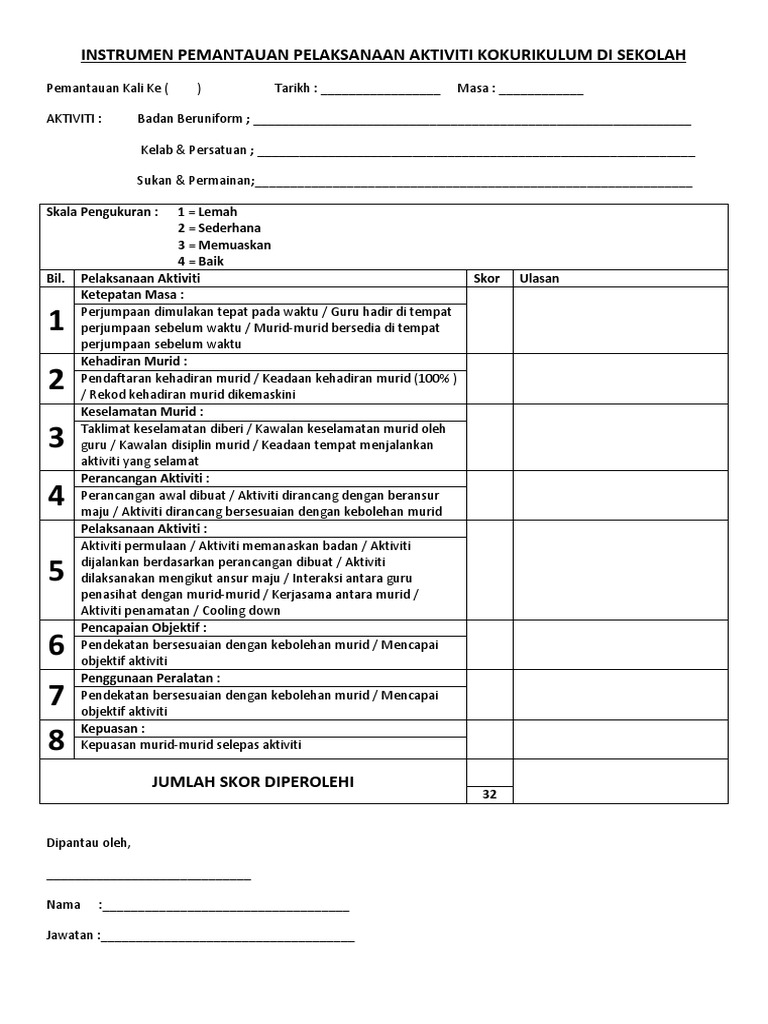 Instrumen Pemantauan Pelaksanaan Aktiviti Kokurikulum Di Sekolah Pdf