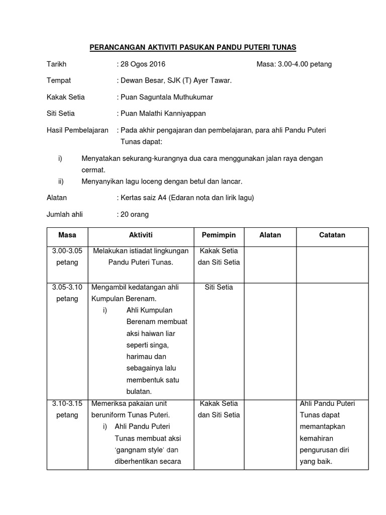 Rancangan Tahunan Pandu Puteri Tunas Doc Google Drive
