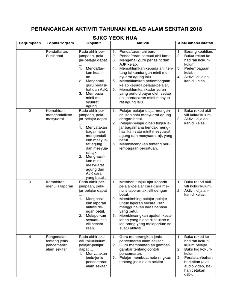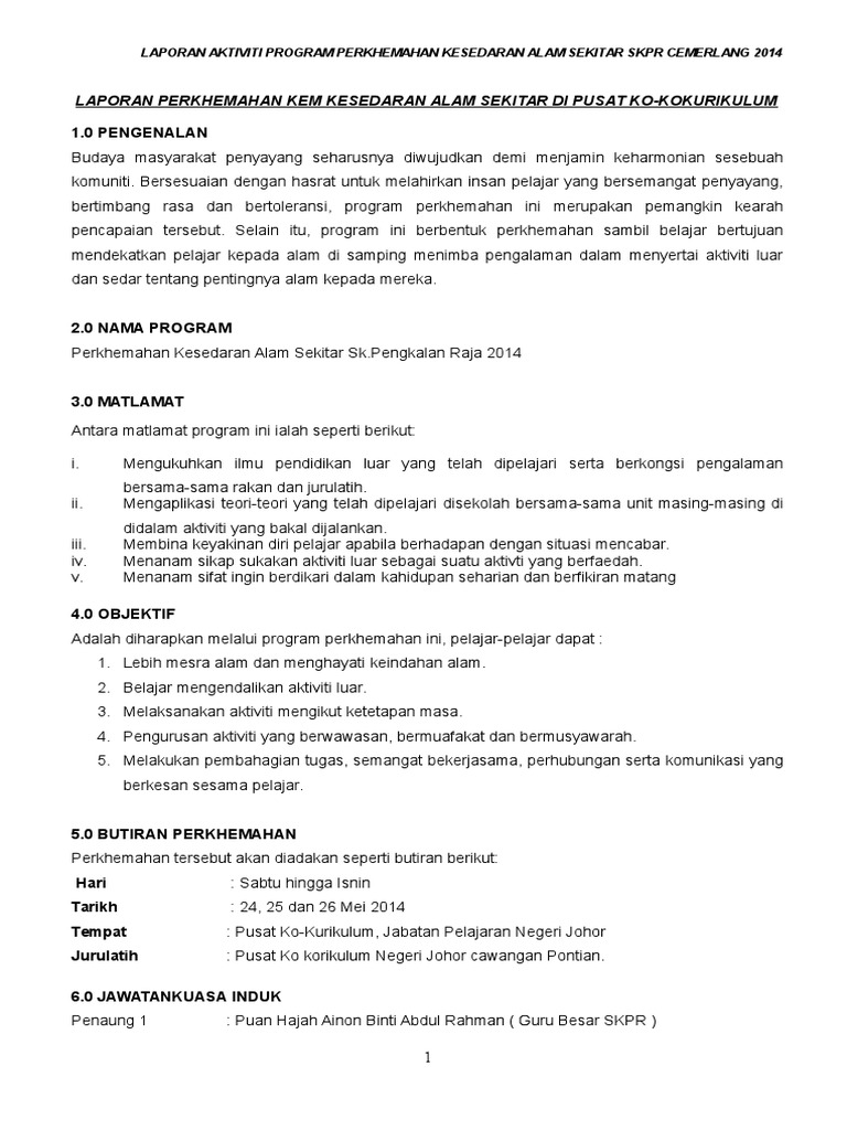 Menganjurkan programbengkelseminar untuk mendedahkan. Kelab Alam Sekitar Modul Pengurusan Kokurikulum Nama Unit. Dewan Serbaguna Sekolah Bahan Bantu Mengajar.
