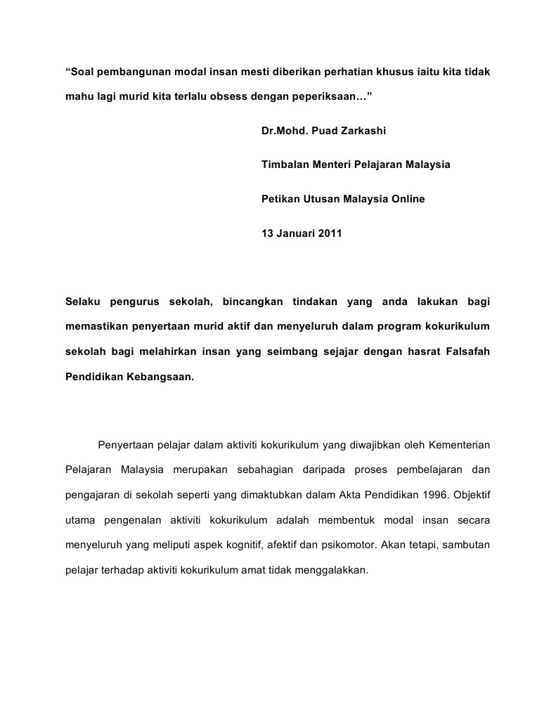 Tindakan ibu bapa ini sesuai dengan peribahasa bagaimana acuan begitulah kuihnya. Keperluan Aktiviti Kokurikulum Beruniform Kepada Pelajar Tingkatan Empat Di Sekolah Menengah Kebangsaan Di Daerah Langkawi Lokman Bin Mohd Tahir Osmayati Othman Fakulti Pendidikan Universiti Teknologi Malaysia Abstrak. Kebenaran ini adalah tertakluk kepada tatacara pelaksanaan aktiviti sukan dan kokurikulum di dalam Garis Panduan Pengurusan dan Pengoperasian Sekolah 30.