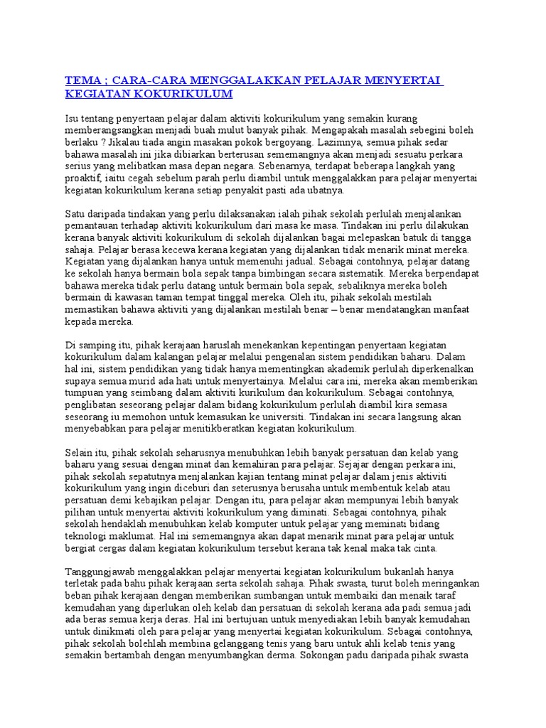 Karangan Langkah Menggalakkan Aktiviti Kokurikulum Pdf