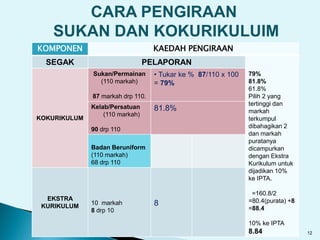 Semoga perkongsian standard 32 pengurusan kokurikulum bermanfaat kepada guru dan pelajarmurid. CARA PENGIRAAN SUKAN DAN KOKURIKULUM KOMPONEN KAEDAH PENGIRAAN SEGAK PELAPORAN SukanPermainan 110 markah 87 markah drp 110. KEKANGAN MASALAH Jika ada 1.