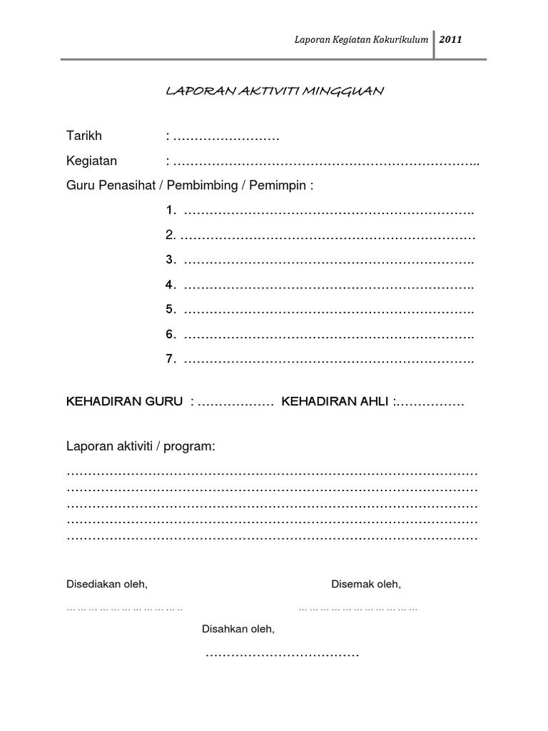 Contoh dokumen laporan aktiviti kokurikulum. Nyatakan juga masa tempat nama penceramah dan tajuk penceramahMenceritakan keseluruhan. Nur Amirah Hani Binti Azmi 3 Cik Chua Siok Nui 4 5. 1EN AZMI BIN ABU YAMIN.