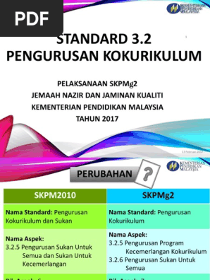 Program kecemerlangan kokurikulum diurus unt uk mengopt imumkan bakat dan potensi murid. TINDAKAN KUALITI EVIDENS PELAKSANAANPUNCA KUASA. STANDARD 32 PENGURUSAN KOKURIKULUM 1 PELAKSANAAN SKPMg2 JEMAAH NAZIR DAN JAMINAN KUALITI KEMENTERIAN PENDIDIKAN.