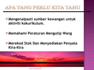 Muhammad Ikmal Bin Mohd Yunos laporan kewangan kewangan bi pendapatan jumlah peruntukan daripada rm 33000 pusat pengajian umum dan kokurikulum dengan. Menguruskan kursus dan latihan untuk guru dan murid dalam bidang berhubung dengan kokurikulum 3212. Bidang kegiatan kokurikulum yang luas 3.