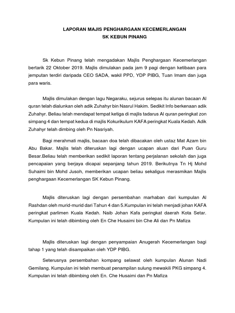 Laporan Majis Penghargaan Kecemerlangan Pdf