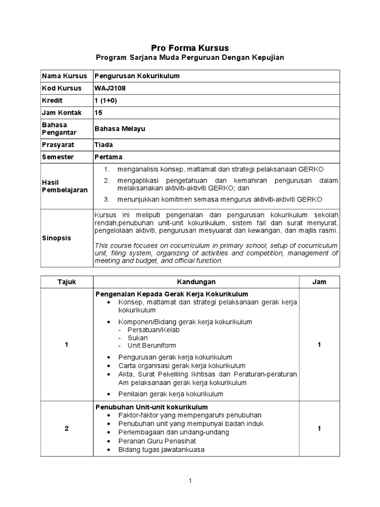05 Pro Forma Waj3108 Pengurusan Kokurikulum Pdf