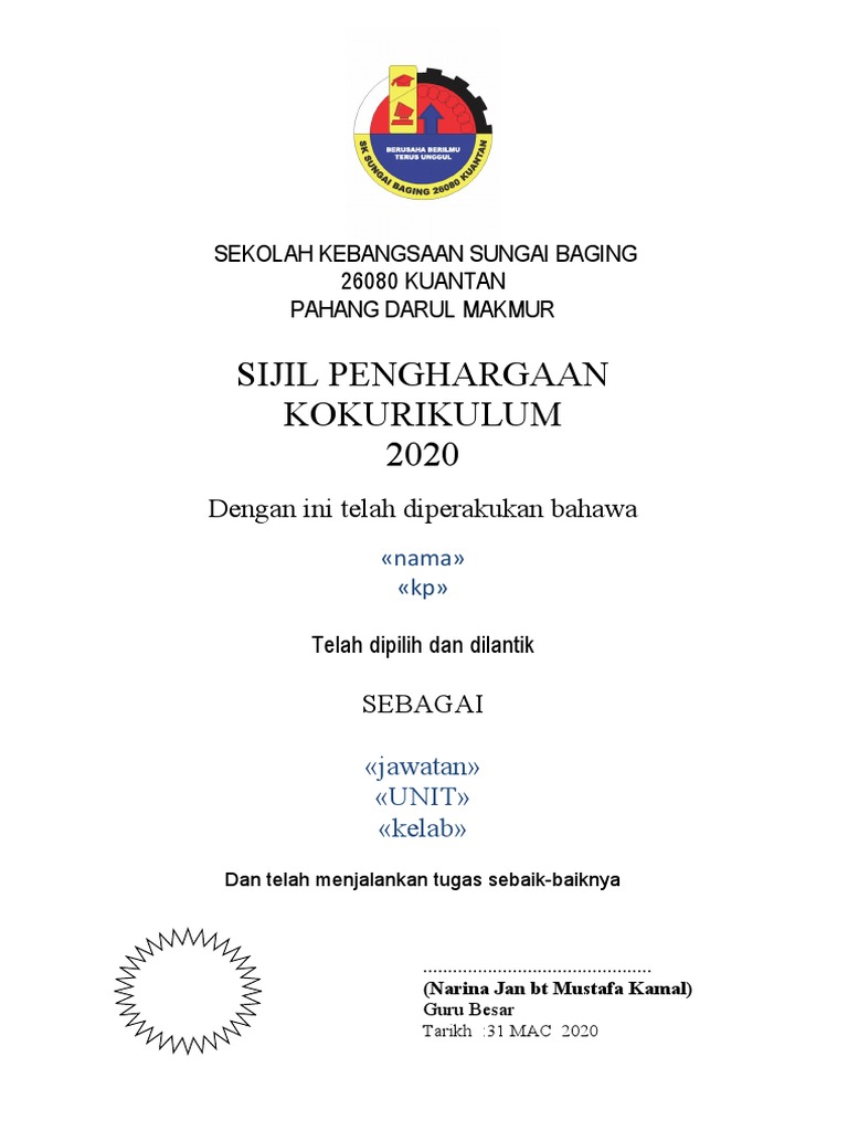 Murid-murid kini lebih mahir dan mampu menguasai cara. Sijil Penilaian Kokurikulum 10 markah. Save Save Template Sijil Nilam For Later.