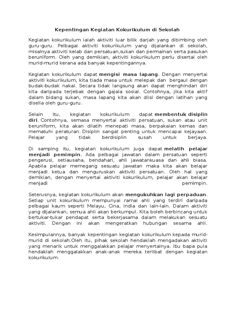 Karangan Faedah Menyertai Kegiatan Kokurikulum Pdf