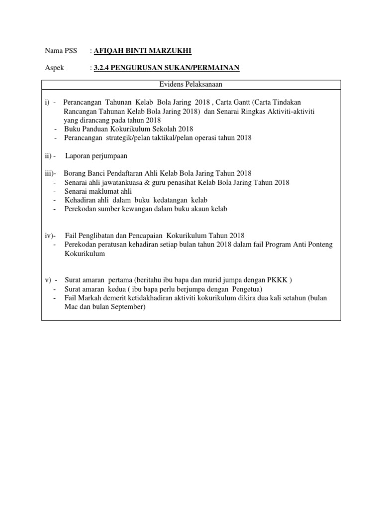 Evidens Pelaksanaan Gerko Kelab Bola Jaring 2018 Pdf