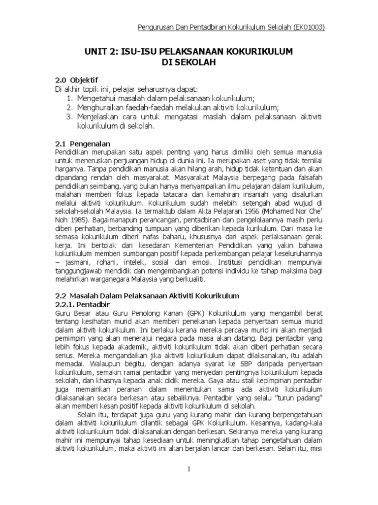 Unit 2 Isu Isu Pelaksanaan Kokurikulum Di Sekolah Pdf Pdf