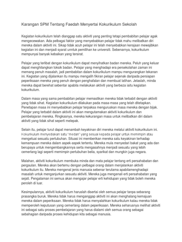 Karangan Spm Tentang Faedah Menyertai Kokurikulum Sekolah Pdf