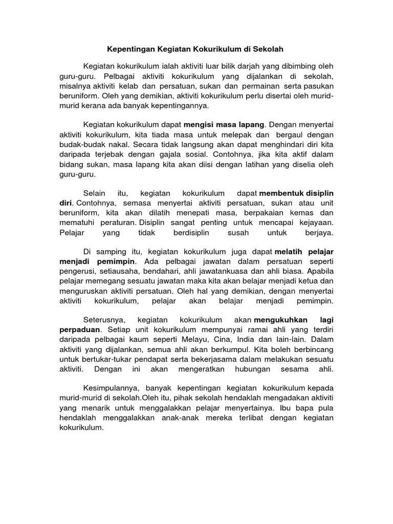 Kepentingan Kegiatan Kokurikulum Di Sekolah Pdf