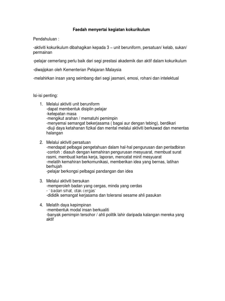 Faedah Menyertai Kegiatan Kokurikulum Pdf