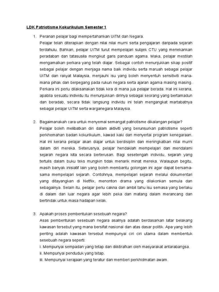 Ldk Patriotisme Kokurikulum Semester 1 Pdf