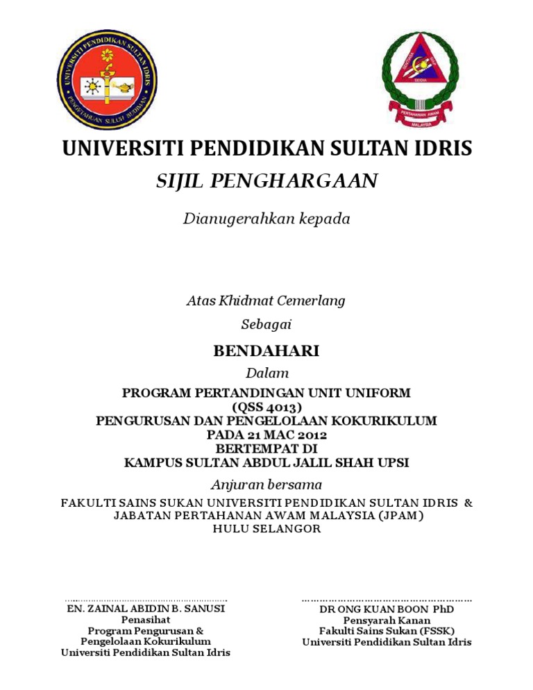 Then I heard that UPSI is taking in a 2nd intake for Diploma in English DiE in November so I decided to work while waiting for the intake to open. Persatuan Pendidikan Moral Universiti Pendidikan Sultan Idris. Not that I refused or failed the interview but I literally got ZERO tawaran.