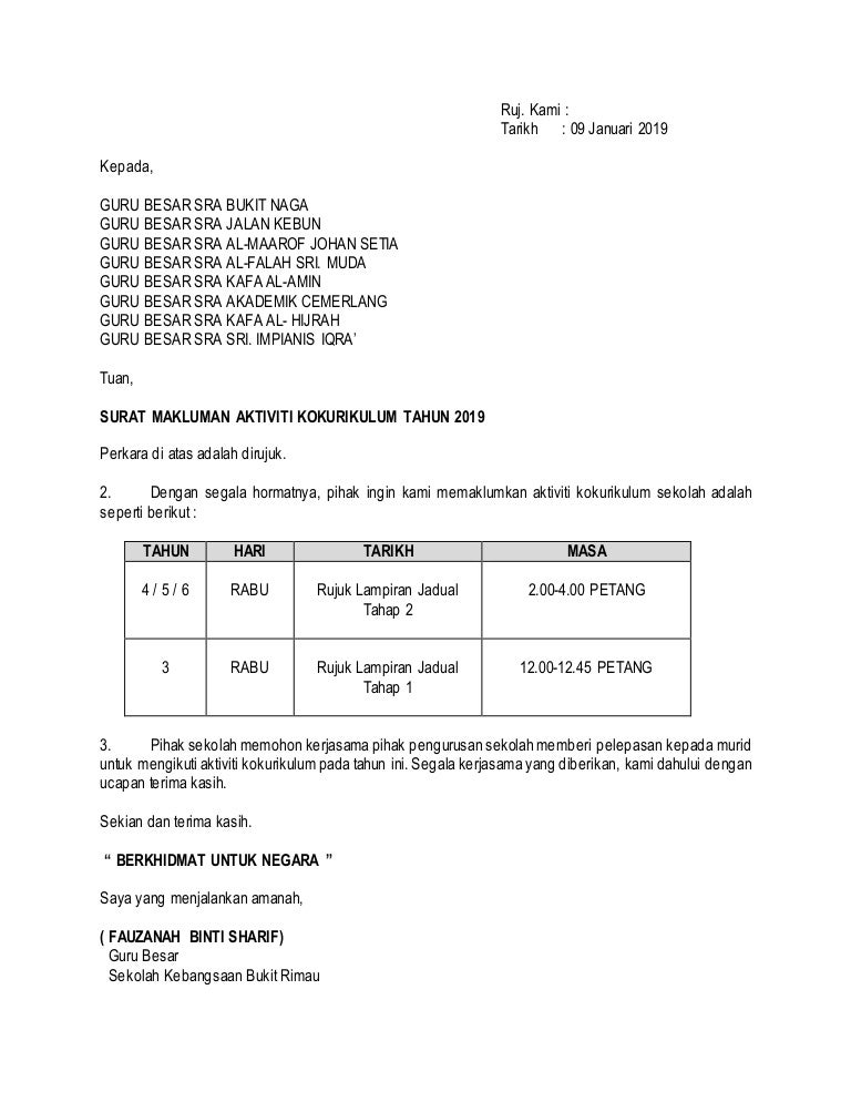 Surat Makluman Aktiviti Koko 2019 Kpd Sekolah2 Agama