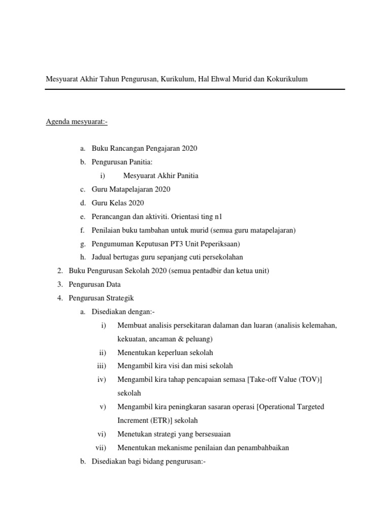 Doc Mesyuarat Akhir Tahun Pengurusan Kurikulum Hal Ehwal Murid Dan Kokurikulum Sekolah Amirah Ismail Academia Edu