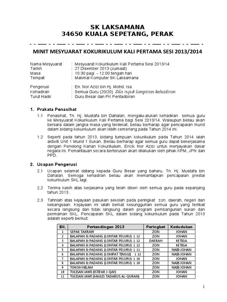 Azizi Mesyuarat Kokurikulum 1 2014 Pdf
