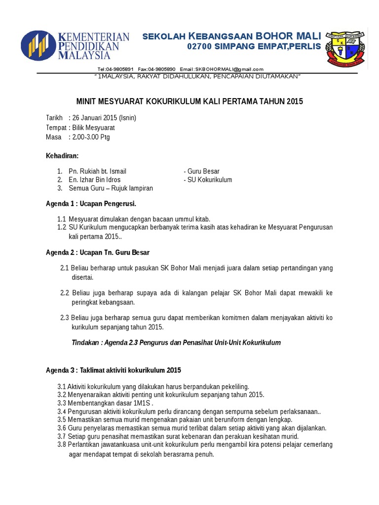 Minit Mesyuarat Kokurikulum Kali Pertama 2015 Pdf