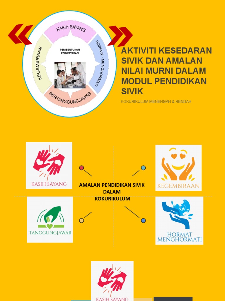 Modul exemplar pendidikan sivik dibina berdasarkan empat nilai teras sivik iaitu kasih sayang hormat-menghormati bertanggungjawab dan kegembiraan. Pendidikan sivik juga diajar kepada anak-anak di prasekolah selamat 30. KELAB PERSATUAN KELAB KOMPUTER.