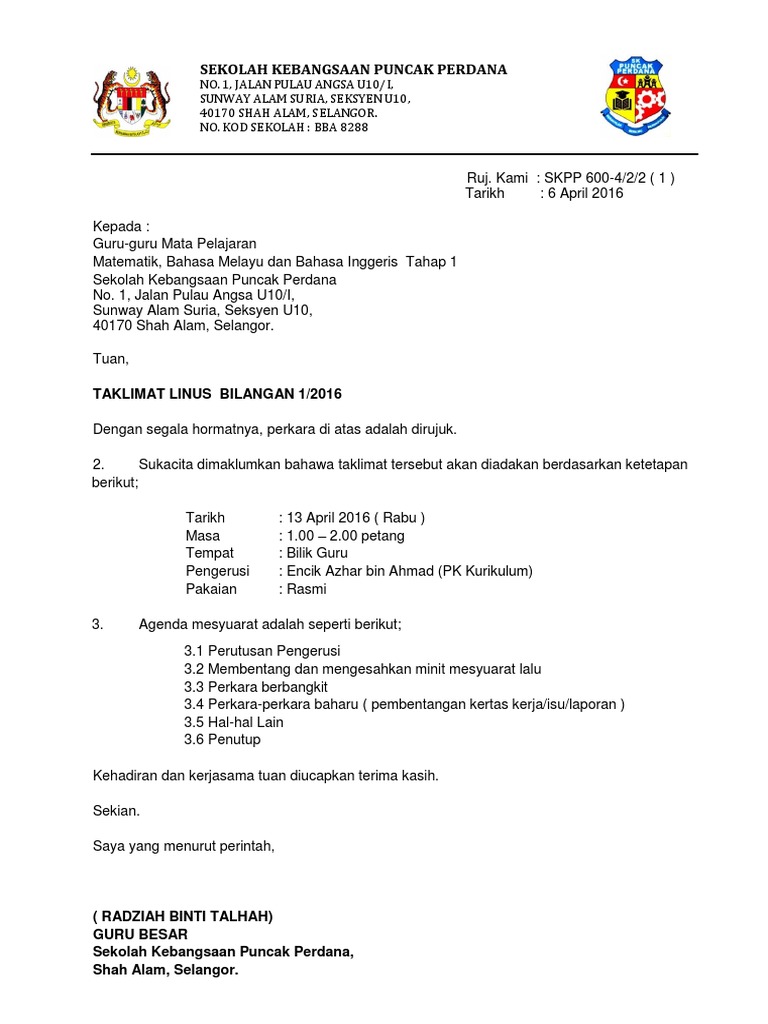 2 Contoh Notis Panggilan Mesyuarat. 11 Ucapan Aluan Terima kasih atas kesudian guru-guru hadir ke mesyuarat. Terima kasih diatas kehadiran guru-guru menghadiri mesyuarat hari ini secara GM.