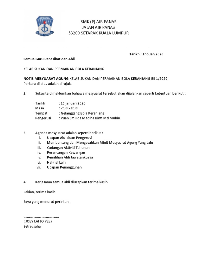 Contoh surat notis mesyuarat agung. NHUNG NHUT AP CHUANG Moe menerbitkan Notis Panggilan Mesyuarat Kokurikulum Bil12021 pada 2021-01-16. Uniform masing-masing pada setiap hari Rabu mulai tahun 2021.